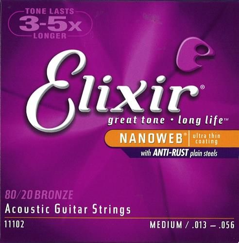 Elixir Acoustic 80/20 Bronze Guitar Strings with NANOWEB® Coating