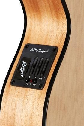 Everything that was great about the EML6 is to be found on the EM. Solid Qld Maple back and sides have replaced the old laminated Qld Maple. This brings a fuller, richer tone which will improve even further over time as the wood learns to vibrate to its full potential. Add to this the new Double X Bracing now found across the entire Mini range as well as Maton’s “Original” AP5 pickup system and you have a real winning combination. Greater tone, improved structural integrity and a perfectly matched pickup system….