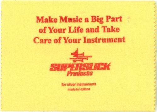 Superslick Silver Polish Cloth is a specially treated cloth to wipe finger marks and other surface grime from silver-plated instruments such as flutes, silver trumpets, silver trombones, silver cornets, silver horns.