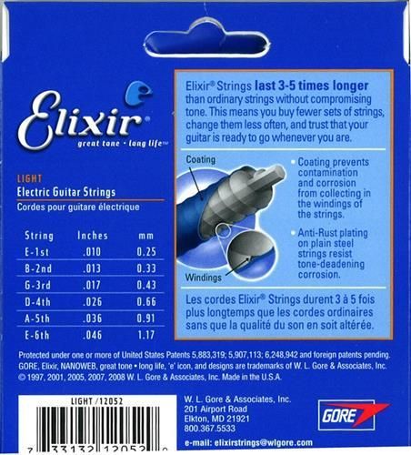 Elixir® Electric Nickel Plated Steel Strings with NANOWEB Coating deliver the presence, punch, and personality of traditional electric guitar strings but with extended tone life. Only coated string brand to protect the entire string with an ultra-thin coating, keeping gunk out of the gaps between the windings Extended Tone Life, players report their tone lasts longer than any other string, uncoated or coated Consistent performance and tone – ready to play whenever you are Smooth feel that is easy on your fingers and enhances playability Reduced finger squeak, good for both performance and recording Anti-Rust Plated Plain Steel Strings resist tone-deadening corrosion, ensuring a longer life for entire set With less hassle and expense of frequent string changes, spend more time making music.