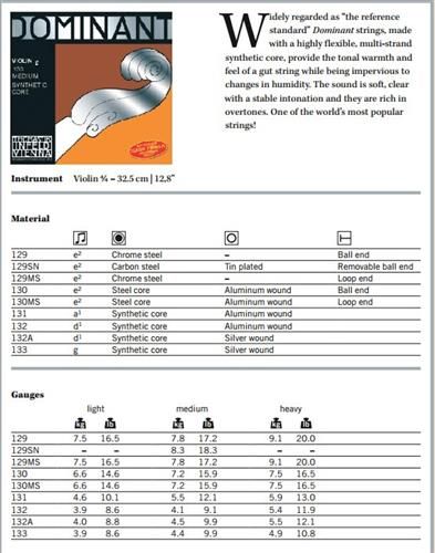 Thomastik Dominant 4/4 size Violin single G-String: Dominant strings are widely regarded as the reference standard and are made with highly flexible multi-strand synthetic core which provide the tonal warmth and feel of a gut string shile being impervious to changes in humidity. The sound is soft, clear with a stable intonation and they are rich in overtones.