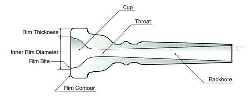 Since this is the part of the mouthpiece that comes into direct contact with the player's lips, it is a critical parameter for playing comfort. Rim contour also has a large effect on attack clarity. Majority of players prefer a relatively flat contour with the peak closer to the inner edge. This type of contour is generally considered to be the most stable, providing optimium contact with the rim bite.