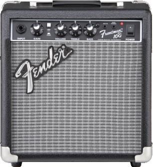 Frontman amps deliver quality tone at a great price, with custom voiced built-in overdrive for great tone and the unmistakable Fender Blackface look. The 10 watt Frontman 10G features a 6" Special Design speaker and a adjustable gain control that rocks guitar tones from tube emulated overdrive to full strength ultra-saturated distortion, perfect for blues, metal and the famous Fender clean tone.