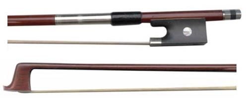 3/4 size Hardwood violin bow VBO823. Round. Natural hair. Full lined and half mounted ebonized hardwood frog. Well finished bow. Bow length 66cm.