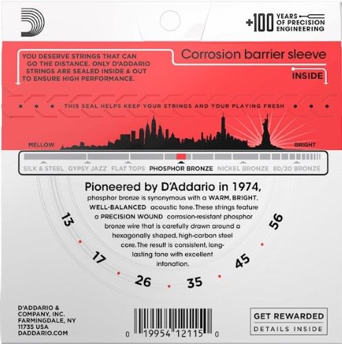 - D’Addario Phosphor Bronze acoustic guitar strings come with a code on the recyclable VCI bag, which you can register to earn Players Circle points.