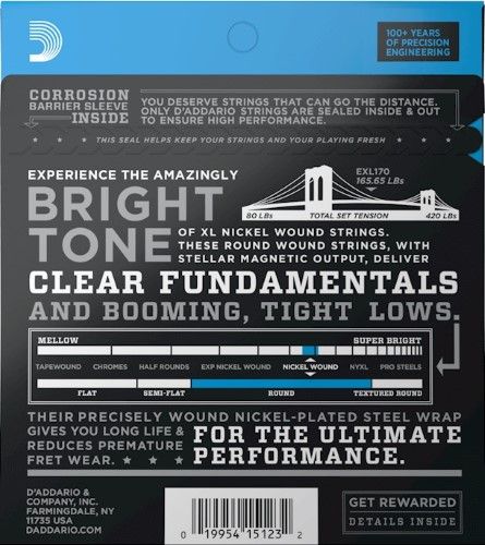 - Like all D’Addario bass strings, XL Nickel are made with our proprietary Hex-Core, ensuring perfect intonation, consistent feel, and powerful durability.