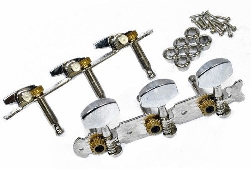 GT Acoustic Guitar Open Gear Tuning Machines on Plate in Nickel Finish (3+3) with Traditional Nickel Buttons