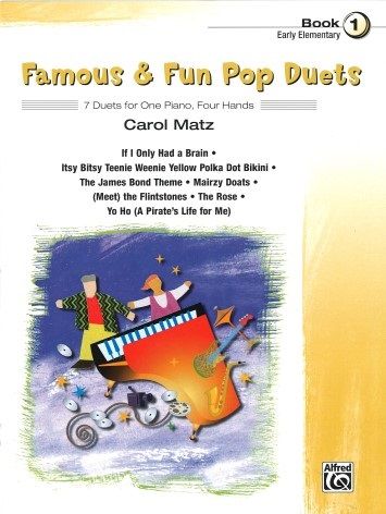 Famous & Fun Pop Duets Book 1 contains carefully selected popular hits from movies radio and television. The duets are arranged in equal parts for elementary to late-elementary pianists and are written for one piano four hands. Additionally the melody often shifts between primo and secondo creating interesting parts for both players. No eighth notes or dotted-quarter rhythms are used. Titles: If I Only Had a Brain * Itsy Bitsy Teenie Weenie Yellow Polkadot Bikini * The James Bond Theme * Mairzy Doats * (Meet) The Flintstones * The Rose * Yo Ho (A Pirate's Life for Me).