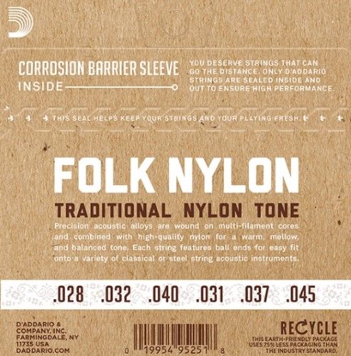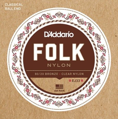 EJ33 Folk Nylon strings feature 80/20 bronze basses, clear nylon trebles, and D'Addario ball ends to accommodate a variety of guitars and string changing options. D'Addario Folk Nylon strings are constructed with high quality nylon and a ball end on each string to facilitate easy installation on classical or steel string acoustic guitars, if desired.