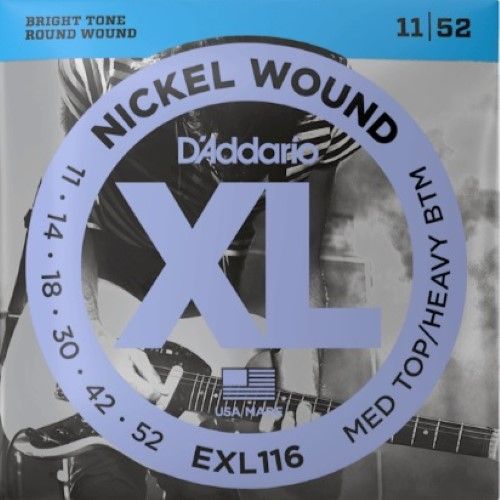XL Nickel Wound electric guitar strings are the standard against which all other strings are measured. Our best-selling electric set, XL Nickel has been revered by players everywhere since 1974. Made with a high carbon steel core and nickel-plated steel wrap wire, XL Nickel strings have a bright, versatile tone, ideal for a wide variety of musical styles. 11-52 Medium Top/Heavy Bottom gauge strings are a hybrid, providing the high strings moderate flexibility, with a booming, tight low-end.
