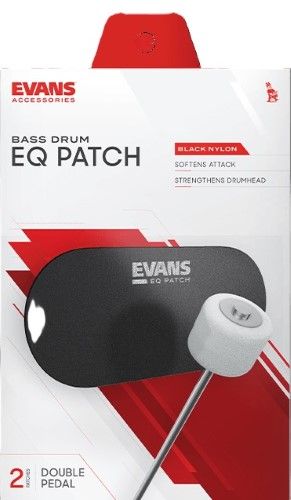 EVANS EQPB2 is a black non-slip flexible nylon bass drum patch for double-pedals, which softens attack and strengthens the head without affecting sound quality.