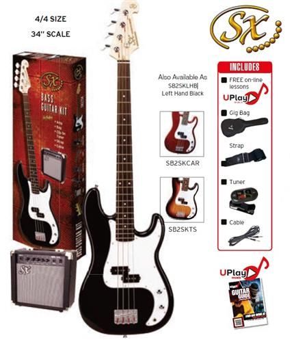 Plus: SX clip-on tuner, 7mm padded gig bag, strap, lead and UPlay Guitar Guide with free online lessons.