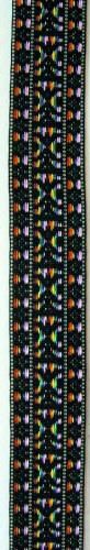 This 2" wide Poly Pro guitar strap is made with a Violet, Red & Yellow "Hootenanny" style fabric and is fully adjustable with leather ends. Adjustable length from 39" to 58"