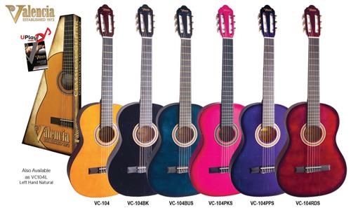 Nickel machine heads with white buttons. Supplied with Valencia UPlay Guitar Guide and free online lessons. Full colour display box. Natural gloss.