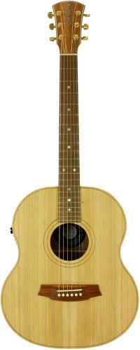 The Little Lady 2 Series is a 23.5 inch scale small guitar. This scale was used by high end Jazz guitars in the mid 20th century and can be played professionally either on stage or acoustically. The Little Lady 2 has "AA" Grade solid top, back and sides with abalone snowflake fretboard inlays, binding, , purfling and the Cole Clark Panented 3 Way Pickup, gold machine heads, 2 ring rosette & a pro gig bag