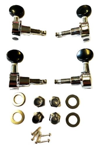 GT Ukulele Sealed Tuning Machines in Chrome Finish with Black Round Buttons (Set of 4)