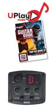 Chrome diecast machine heads. Redding 3 band EQ preamp with LCD chromatic tuner. Rotary volume, low, middle and high controls. Phase shift and tuner switches. Low battery LED. 9 volt battery. Piezo under-saddle pickup. Supplied with UPlay Guitar Guide and free online lessons. Full colour display box. tobacco sunburst.