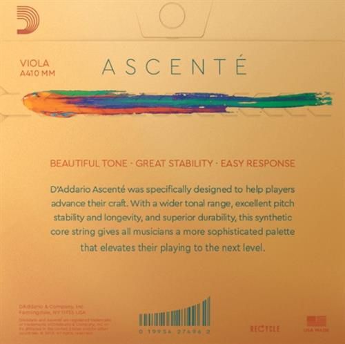 Ascenté viola strings were specifically designed to help players advance their craft with elegance and consistency. With a wider tonal range, excellent pitch stability and longevity, plus superior durability, this synthetic core string delivers a more sophisticated palette that elevates playing to the next level.