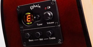 The Kohala KG100SE full size guitar is an all new student Steel string guitar featuring an Adjustable Truss Rod for maximum playability, Properly Cured Woods and Bracing for increased durability, Special Fret Installation and Pressurized Gluing methods for enhanced performance. The pickup has volume, EQ/Tone allows more volume with any guitar style amplifier. The convenient on-board tuner is accurate and easy to use. Each Kohala guitar comes with a 5mm Padded Gig Bag.