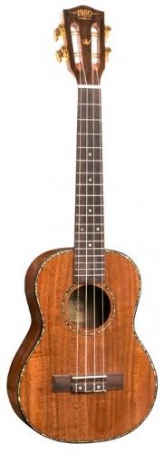 EU300T 1880 UKULELE CO. - 300 Series. Tenor Ukulele. Superb solid koa top, koa back and sides. Arched back. Black walnut with pearl top binding and black walnut back binding. Walnut bound okoume neck with black walnut fingerboard and pearloid dot inlays. Pearl inlaid soundhole rosette. Black walnut