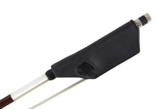 Stringvision Bowgrip is easy to slide on. All bowgrips have a light coating of (bow friendly) cornstarch on the inside. This makes installation of the Bowgrip quite easy. Simply take it out of the package and “work it” over the frog. The fit is very secure, and the bow grip will stay in place.