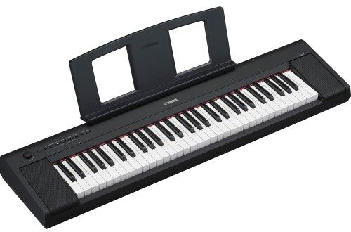 The 61-key keyboard (a conventional piano has 88 keys) is perfect for playing pop tunes or simple classical pieces. Although the keys have the same box shape as those on a piano, the keyboard has a lighter feel that makes it easy for beginning pianists to start, rather than the weightier feel of a standard piano keyboard. You can also use headphones with the NP-15 if you are worried about disturbing those around you with your playing.