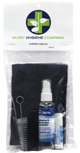 MHC Clarinet Care Kit includes the essential gear needed to keep your clarinet clean and in excellent working order. Includes: Music Hygiene Company Clarinet Cotton Swab; Leblanc Cork Grease; Music Hygiene Company Microfibre Polish Cloth; Reed guard Cl/Alto 2 reeds; OSA Mouthpiece Patch; MHC Woodwind Mouthpiece Brush; SteriSpray 2oz Bottle