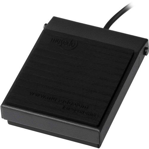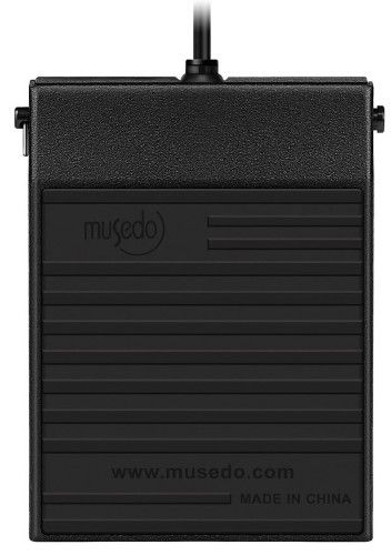 The Musedo TB-004 Sustain Pedal is designed with a metal housing and non-slip rubber surface. It has a polarity switch and is compatible with all electronic keyboards and digital pianos or other instruments requiring a foot pedal.