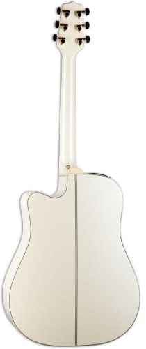Finished in elegant gloss pearl white, this dreadnought guitar features ivoroid binding over the body, fingerboard, and headstock. Touched with gold hardware, pearl dot inlays, and a beautiful abalone rosette, this guitar exemplifies elegance and striking simplicity. The tonewoods create a very shimmering, punchy, bold sound that is great across a wide variety of musical styles that is 100% Takamine.