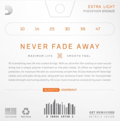 - XS Phosphor Bronze strings have the longest life of any D’Addario acoustic string, thanks to the ultra-thin XS film coating.