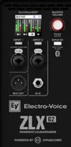 ZLX G2 powered versions are “Powered by Dynacord” – onboard premium electronics from Electro-Voice’s sibling brand. Ultra-efficient 1000 W Class-D power amplifier modules feature an integrated four-channel, three-input digital mixer with high-quality effects. The mixer