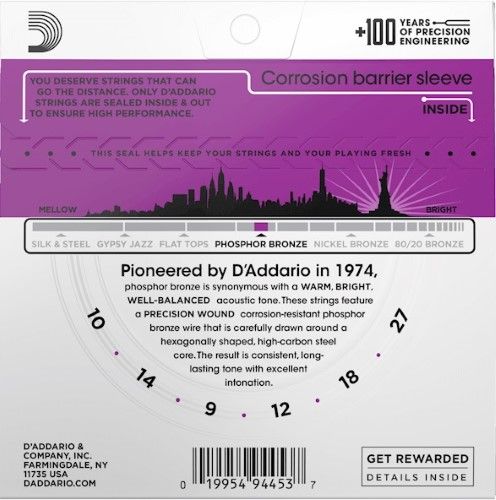 - Phosphor Bronze wrap wire provides tried-and-true D’Addario acoustic tone, with beautiful balance and warmth suitable for all musical genres.