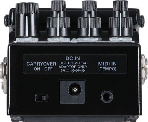- Controls: TIME knob; FEEDBACK knob; LEVEL knob; DEPTH knob; RATE knob; HI CUT knob; OFFSET Knob; Pedal switch; CARRYOVER switch