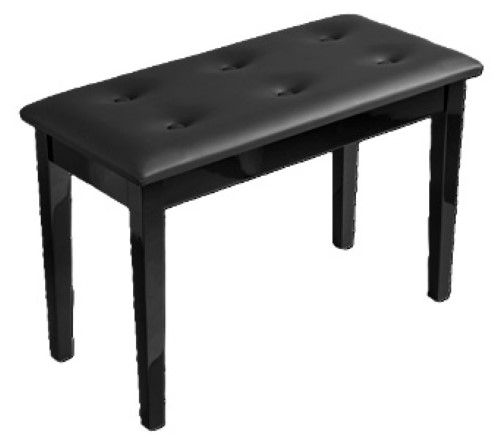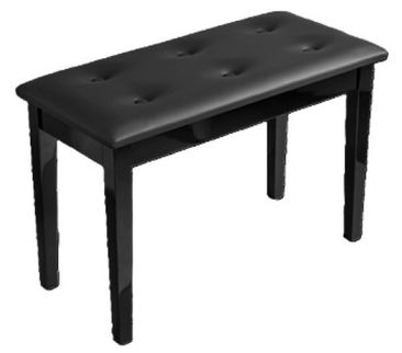 HPB13B HEMINGWAY - Piano stool. Wooden bench with thick padding and button tufted black vinyl seat. Music storage compartment. Straight legs. 75cm (W) x 35cm (D) x 50cm (H). Polished ebony.