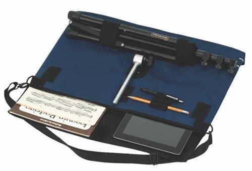 Portastand hold a general belief that if it can’t withstand a minor breeze, it’s not a music stand. For their flagship Troubadour 2.0, they took that idea to the next level. Its black powder-coated aluminum desk supports orchestral scores, laptops, tablets, and auxiliary equipment without so much as a whimper. Its exclusive custom tripod, now featuring our Superior Pro Clutch design, goes low enough for the seated classical guitarist and high enough for the standing string player. Its patented, tailor-fit 1000D Cordura Nylon Desk cover with it’s: Wind resistors, removable shoulder strap, 3 over-size rear pockets, pencil and tripod storage features is weatherproof, tour-proof, and student-proof—all while dutifully schlepping everything from your expensive Tablet, to the kind of orchestra-sized scores that strike fear into the hearts of even the burliest percussionists.
