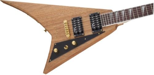 Other great features include dual Jackson high-output humbucking pickups with ceramic magnets power, single volume and tone controls, three-way toggle switch, an adjustable string-through compensated bridge and die-cast tuners. This angular battle-tested axe is available in Natural Oil, and is finished off with a black pickguard and gold hardware.