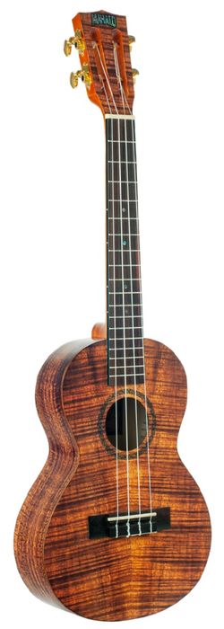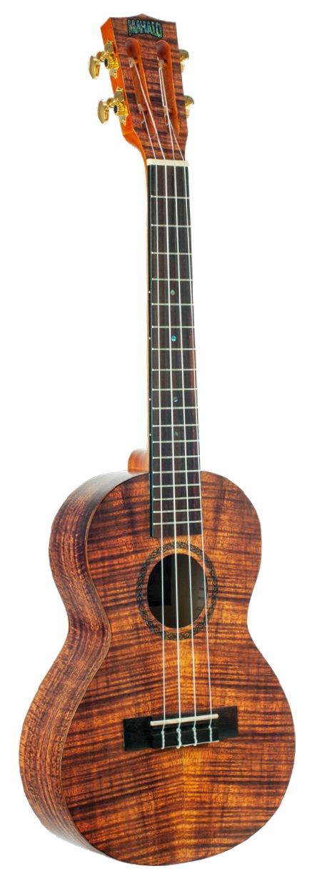 MA3KA MAHALO - Artist Elite Series. Tenor Ukulele. Linden body with arched back. Mahogany neck. Slotted headstock. Amara ebony fingerboard with abalone dot inlays and Amara ebony bridge. Gold plated Waverly style machine heads. Graph Tech Canada, NuBone XB compensated saddle. Aquila Super Nylgut strings. 18 nickel frets. 432mm scale.
