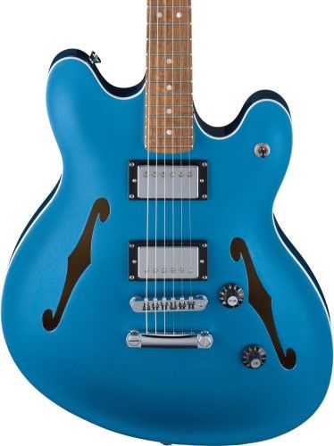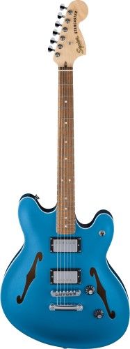 The Starcaster® broke the mold of semi-hollow guitar design with its offset body shape when it was introduced in the '70s, offering versatile sound and out-of-this-world styling for the most adventurous players. The Affinity Series® Starcaster Deluxe features several player-friendly refinements such as a lightweight semi-hollow body, a slim and comfortable “C”-shaped neck with familiar Stratocaster® headstock, an adjustable bridge with stop tailpiece for solid tuning stability and sealed die-cast tuning machines with split shafts for smooth, accurate tuning and easy restringing. Loaded with a pair of Squier humbucking pickups with 3-way switching for genre-defying sonic variety, this model is ready to accompany any player at any stage.