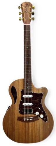 - All solid timber cutaway True Hybrid Thinline Grand Auditorium with F.E.A internal bracing.